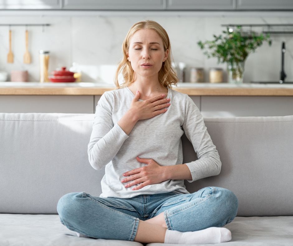 Breathe in a square. Inhale for 4 counts, hold for 4, exhale for 4, hold for 4. Repeat a few times to calm your nervous system.